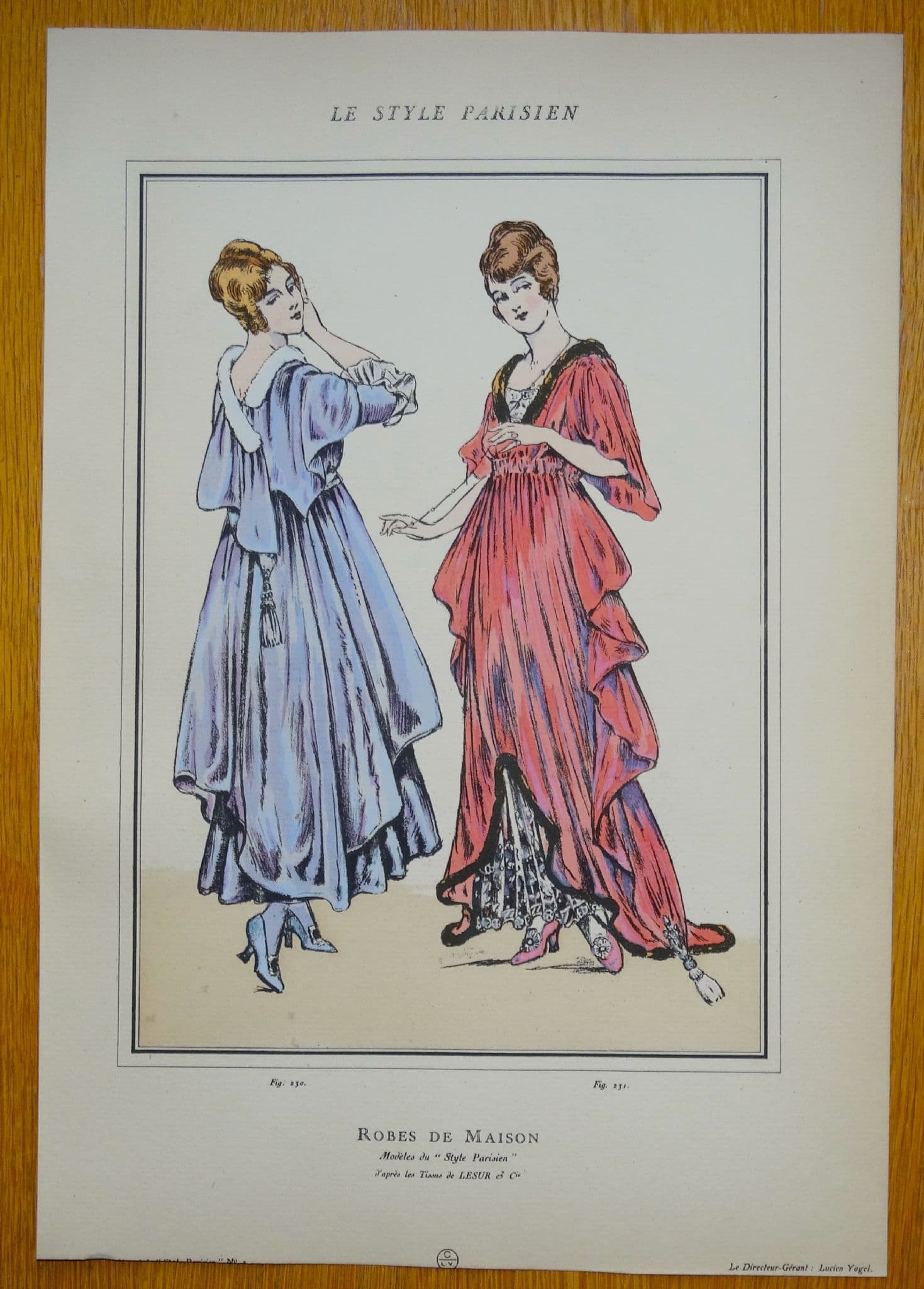 LE STYLE PARISIEN was a highly influential fashion journal edited by Lucien Vogel and briefly published in Paris during World War I. The leading Parisian fashion designers endeavoured to maintain their position in the English, French and American fashion markets during the difficult wartime years. The lavish illustrations from the journal are now extremely scarce and highly collectable.