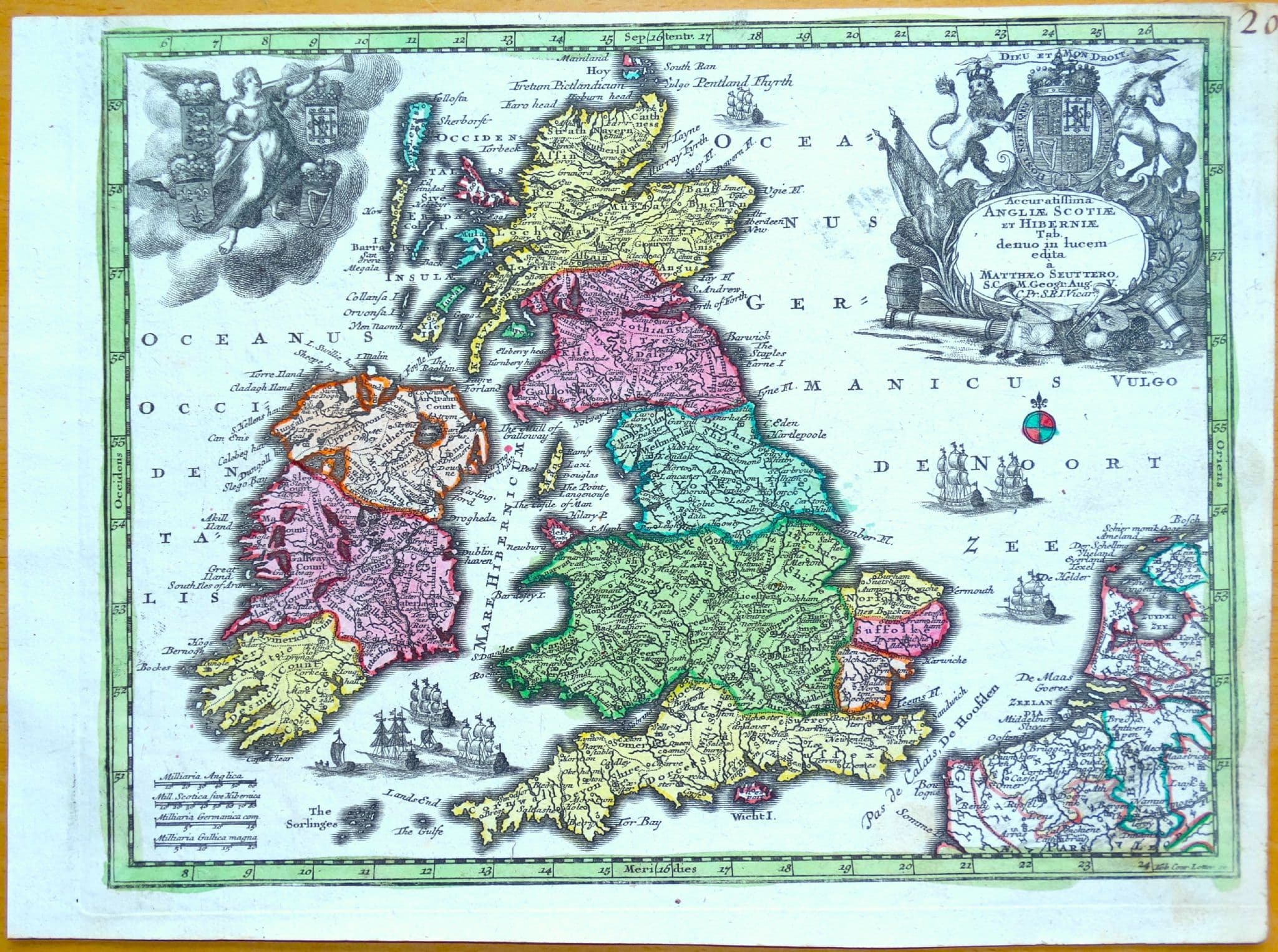 Antique Map GREAT BRITAIN BRITISH ISLES Hand Coloured Engraving Lotter/Seutter 1744