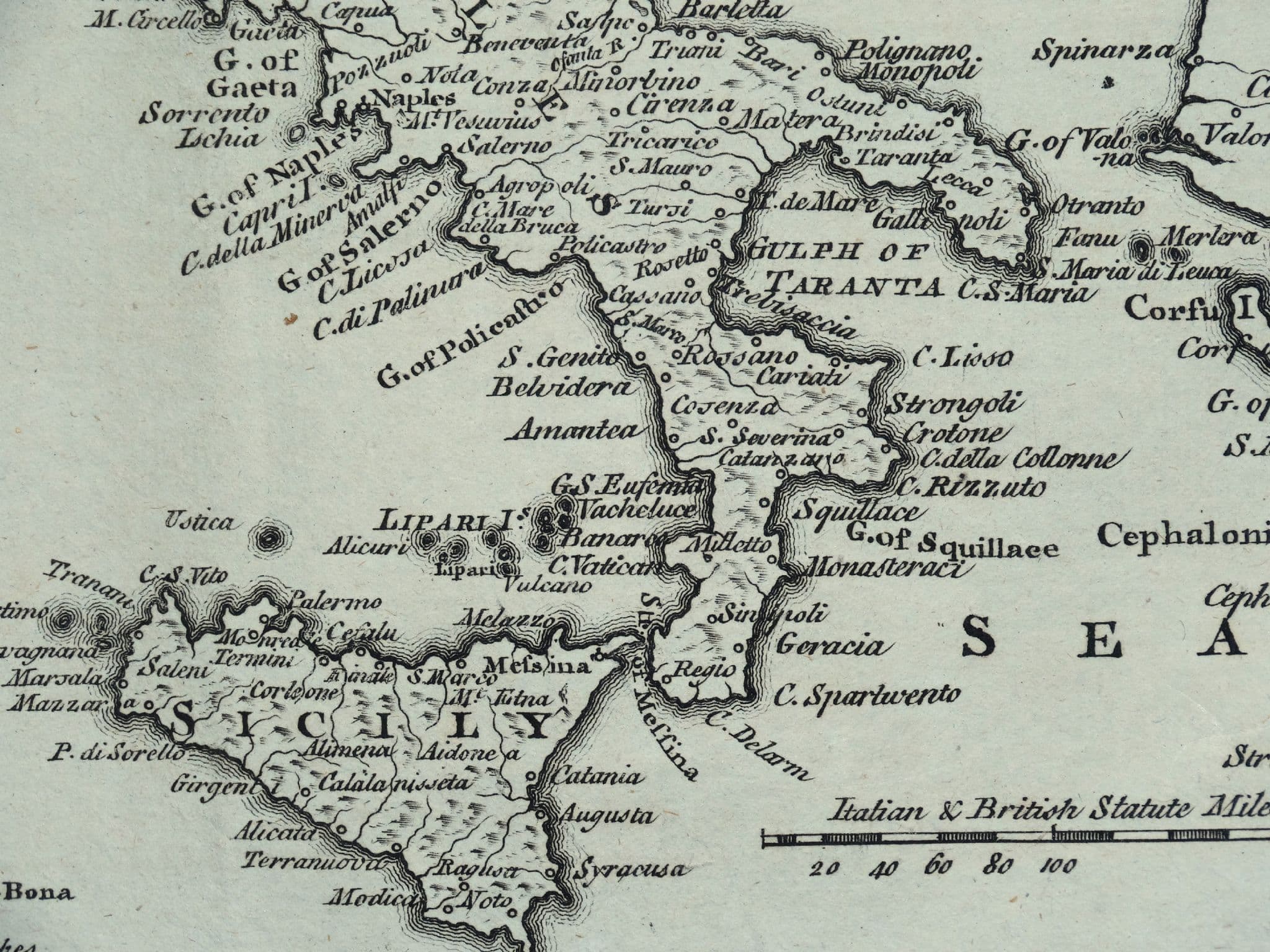 Antique Map ITALY, E.C. Drake vintage Drake's Voyages original engraving 1768