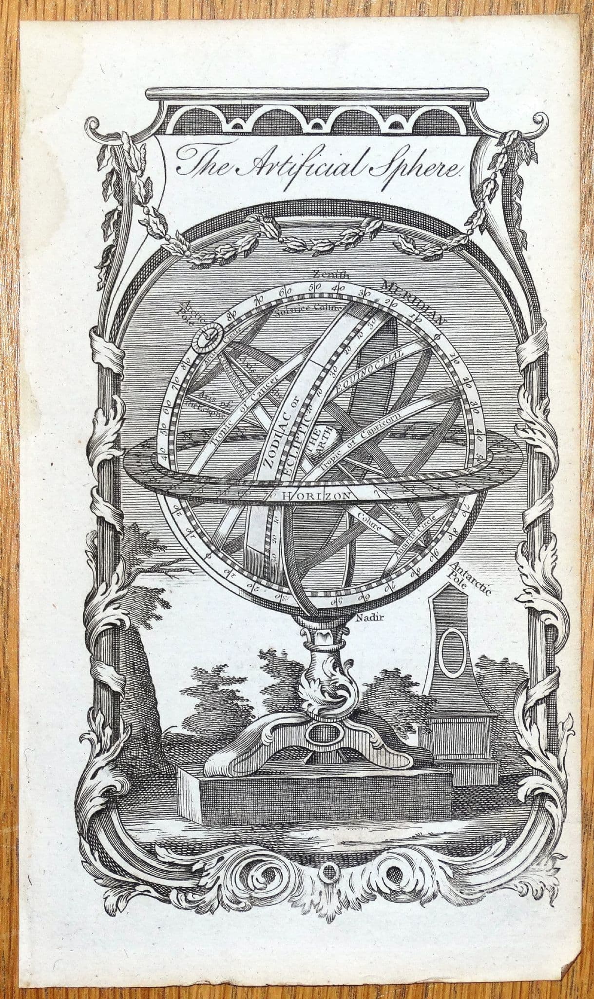 ARMILLARY SPHERE, The Artificial Sphere, W.Guthrie original antique print c1790