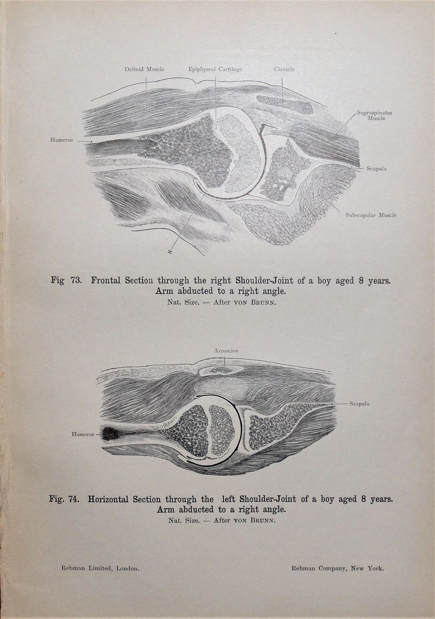 Verso are two further unrelated engravings of a frontal and a horizontal view of the shoulder joint of an 8 year old child.